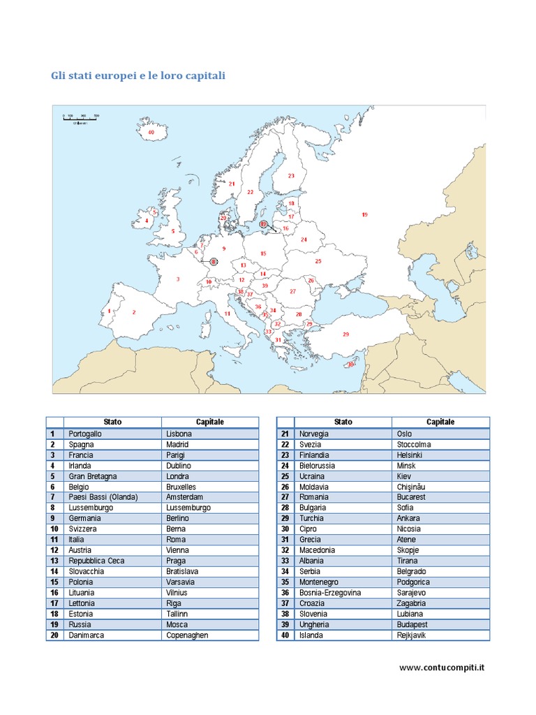 Europa cartina stati e capitali. I 51 paesi europei. Stati che si trovano interamente allinterno dei confini convenzionali dellEuropa Territorio degli Stati transcontinentali che si considerano allinterno dellEuropa Territorio degli Stati transcontinentali che si considerano al di fuori dellEuropa Stati che si trovano geograficamente in Asia Armenia e Cipro Lelenco che segue comprende tutte le entità che rientrano anche parzialmente in qualcuna delle. Lascia anche tu il tuo commento.